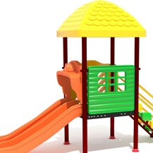 - Sàn nhà chòi KT 1.1mx1.1m dầy 1.5mm , cầu thang làm bằng tôn dày 1,5ly sơn sần tĩnh điện ngoài trời. Cột làm bằng ống thép #110 dày 1,8mm, lancan, vách sắt, tay vịn làm bằng ống 32 dày 1,2mm mạ kẽm sơn tĩnh điện. Các chi tiết nhựa nhập khẩu làm từ nhựa LDPE màu sắc đa dạng. Cầu trượt đơn, dài 2,0m.